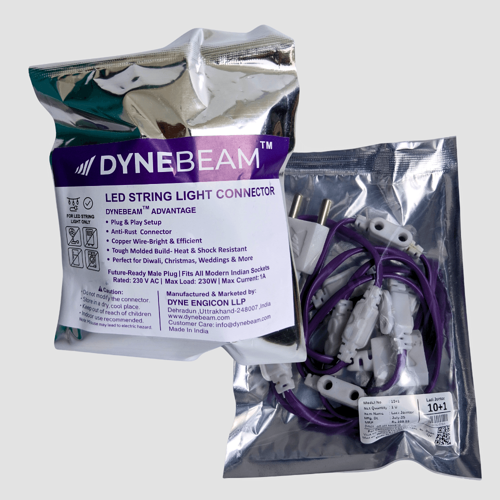 Dynebeam 10+1 LED String Light Connector – Universal Jhalar Jointor for Secure Festive Lighting (Made in India)